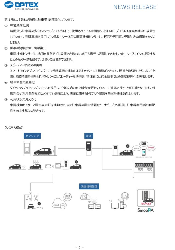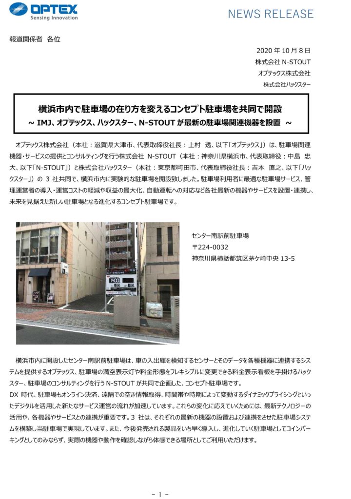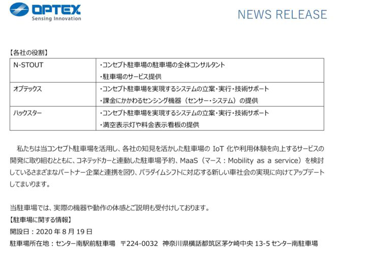 オプテックス株式会社と株式会社ハックスターの3社共同で、横浜市内に実験的な駐車場を開設しました。
